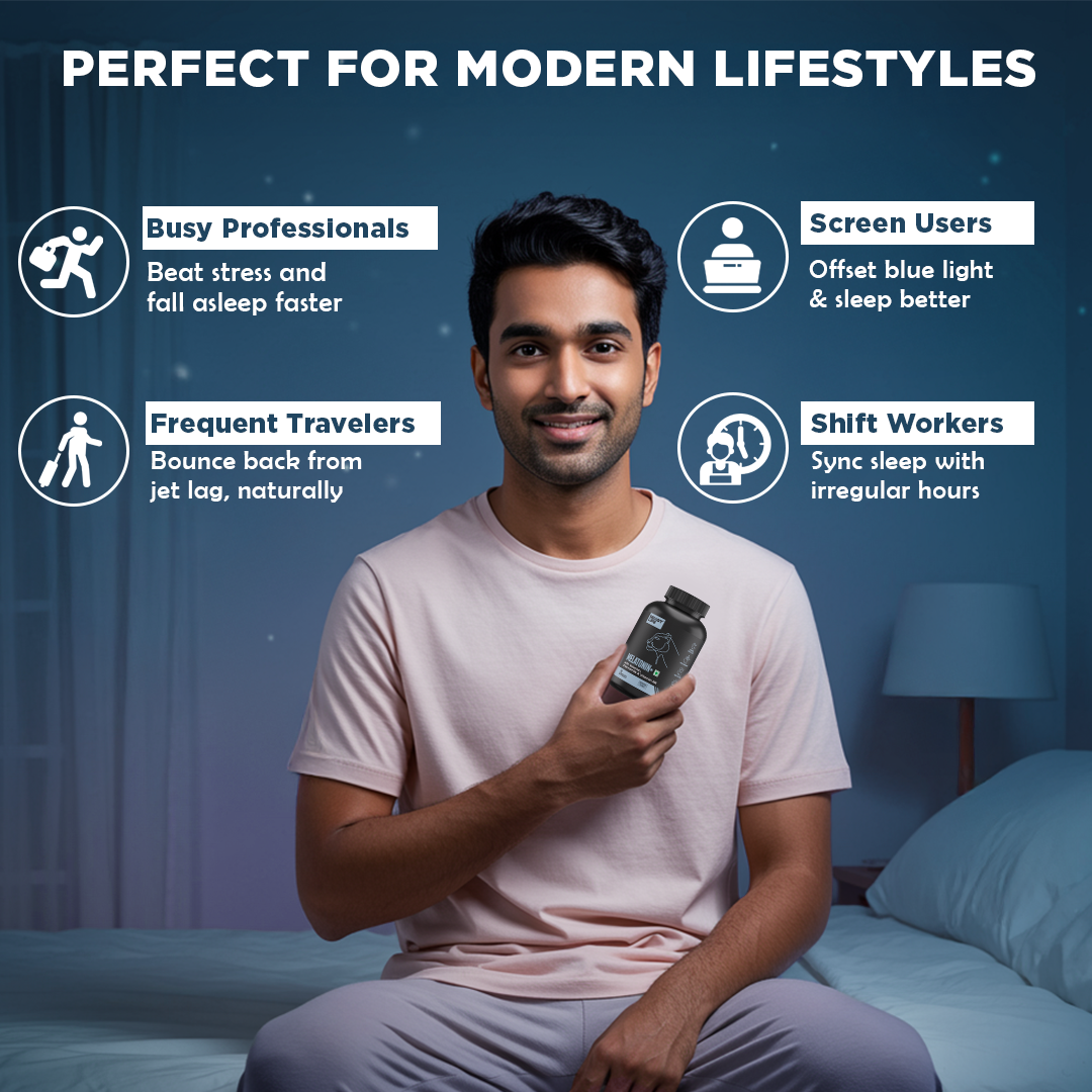Specifically formulated to counteract blue light exposure and stress-related sleep disruption common in today's digital world.