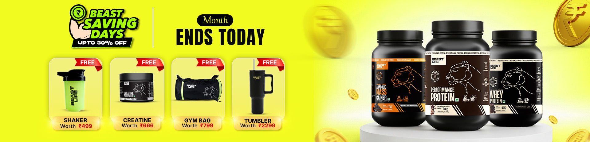 Beast Deals ₹2,115 OFFGet FREEGym ShakerSale -