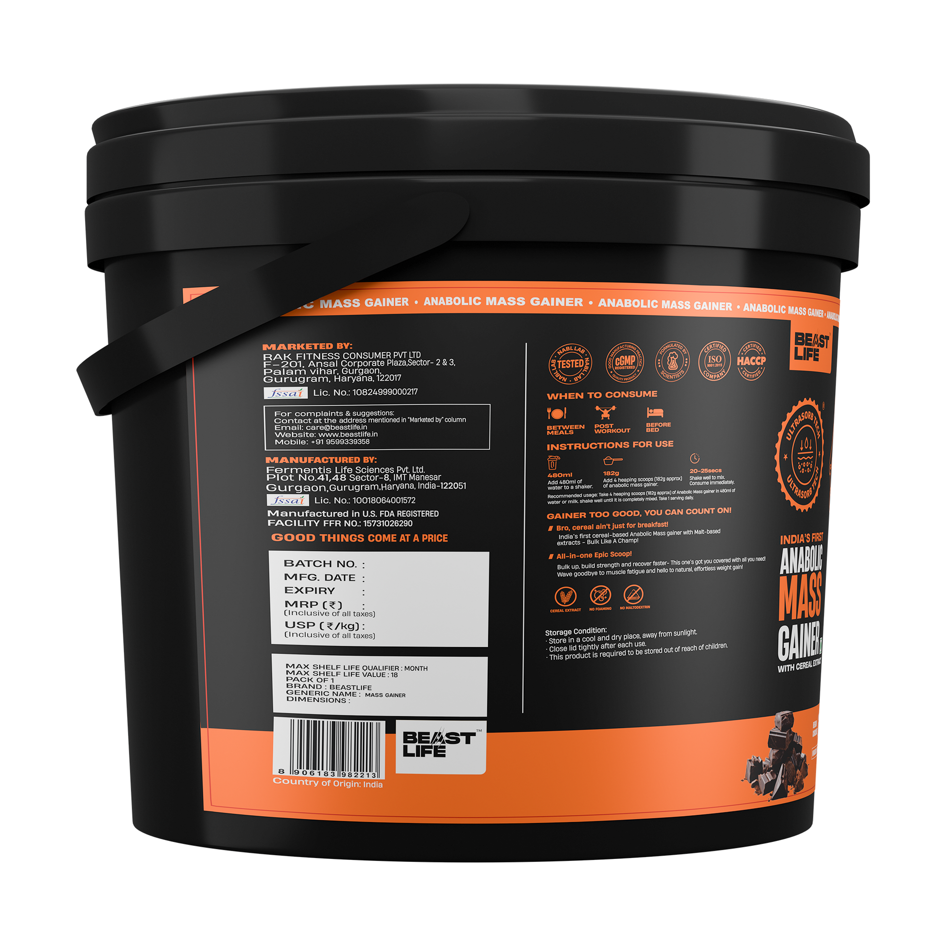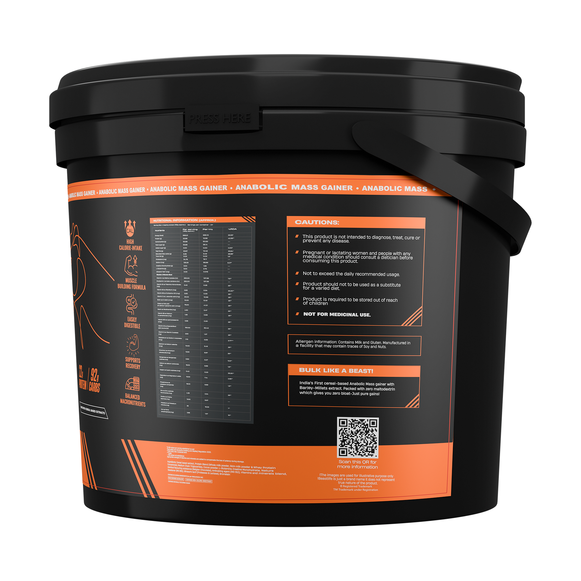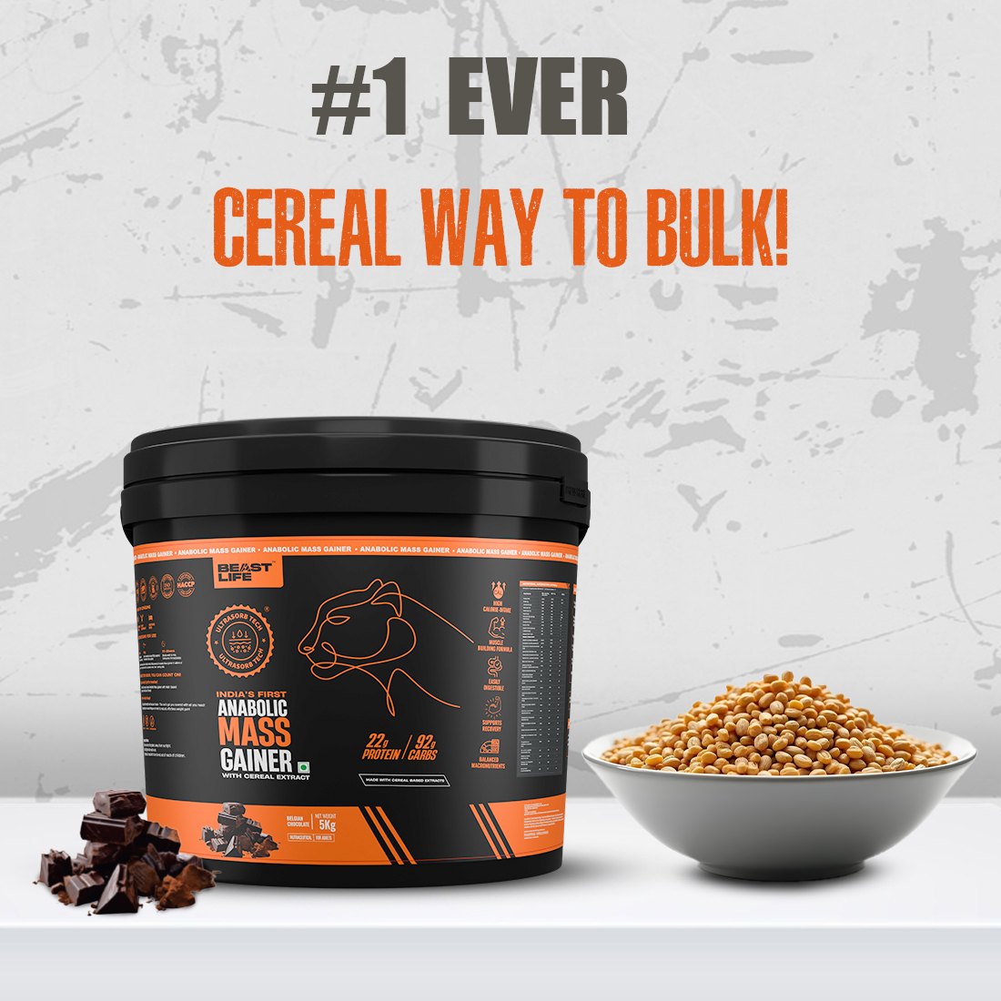 - Meet the Beast Life Anabolic Mass Gainer with a massive 5 kg punch of chocolatey gains. You get 5 sealed packs (1 Kg each) of our high-calorie, cereal-based mass gainer built for your bulking goals.