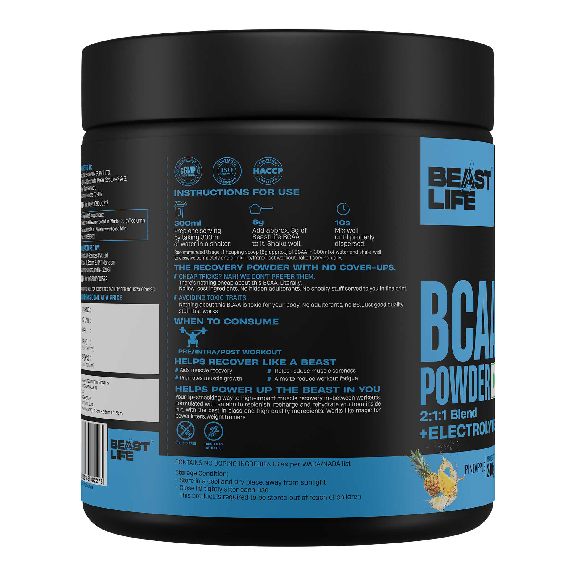 Your Lit Road to Recovery: Beast Recovery BCAA Powder that's trusted by Athletes and is NABL Lab Tested.