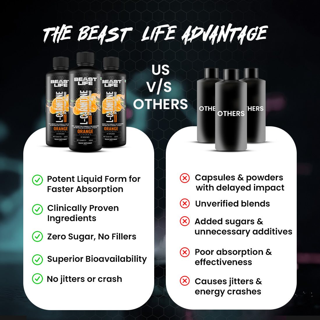 Beast Life L-Carnitine with Vitamin B5 (3300mg, Triple Strength) is designed to help you burn stubborn fat, boost metabolism, and preserve lean muscle. Powered by science-backed ingredients, this formula supports energy production, enhances workout performance, and aids recovery, so you stay stronger for longer.