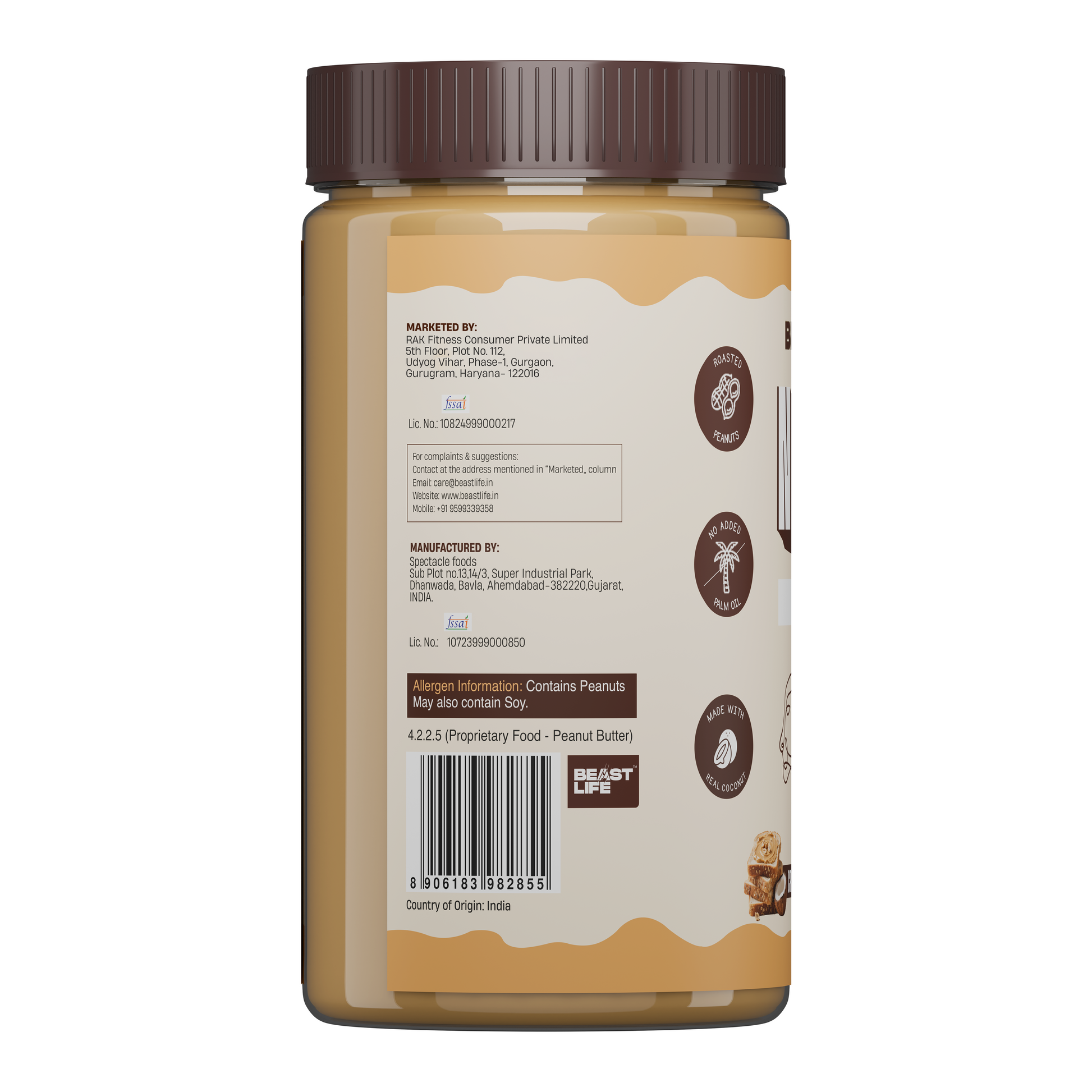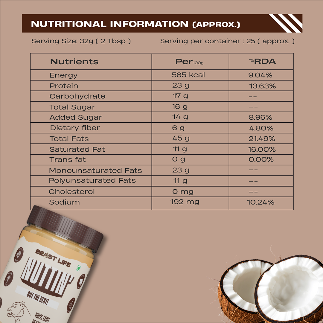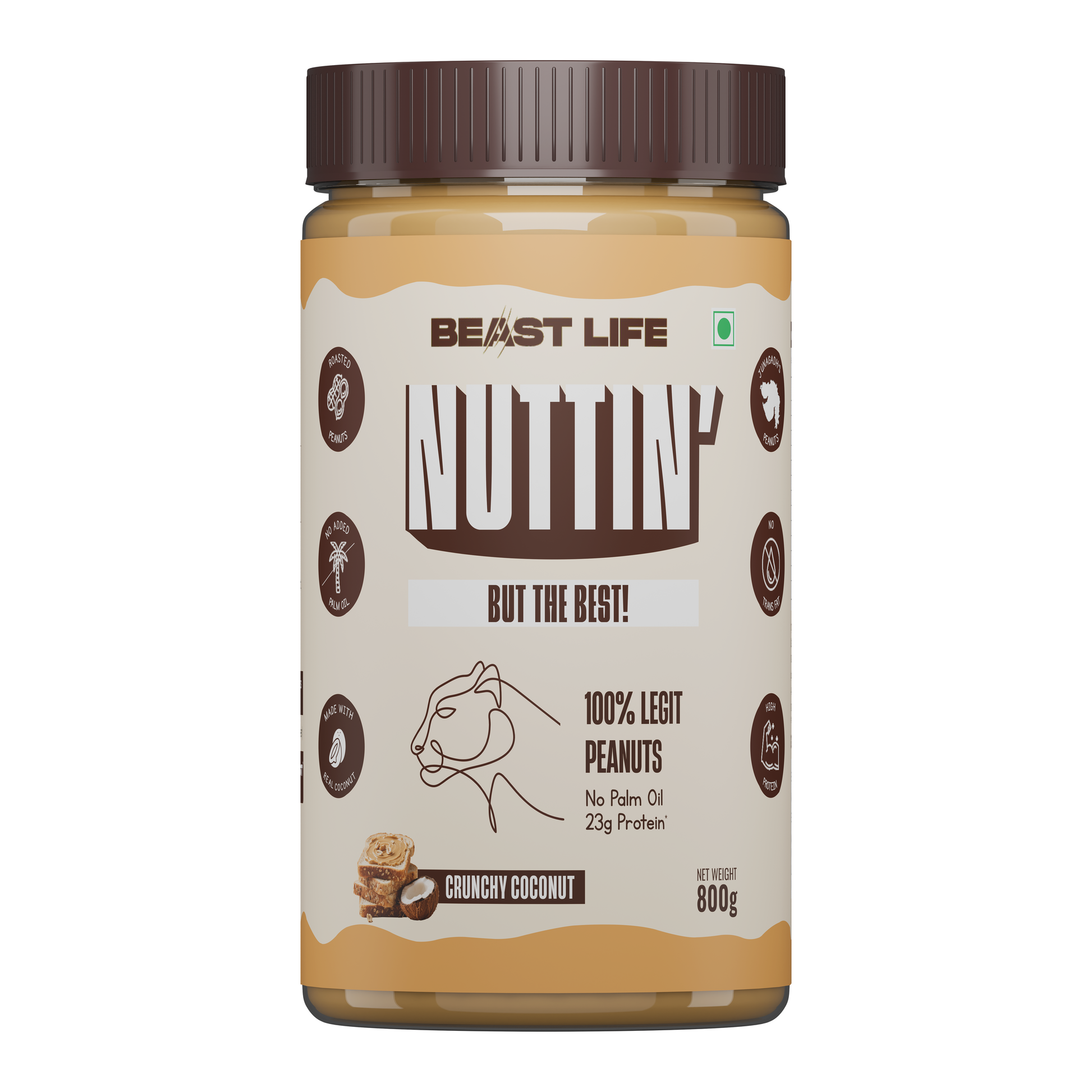 Beast Lifeās Coconut Crunchy Peanut Butter blends roasted Junagadh peanuts with real coconut, for a high-protein snack that feels indulgent, but isnāt.