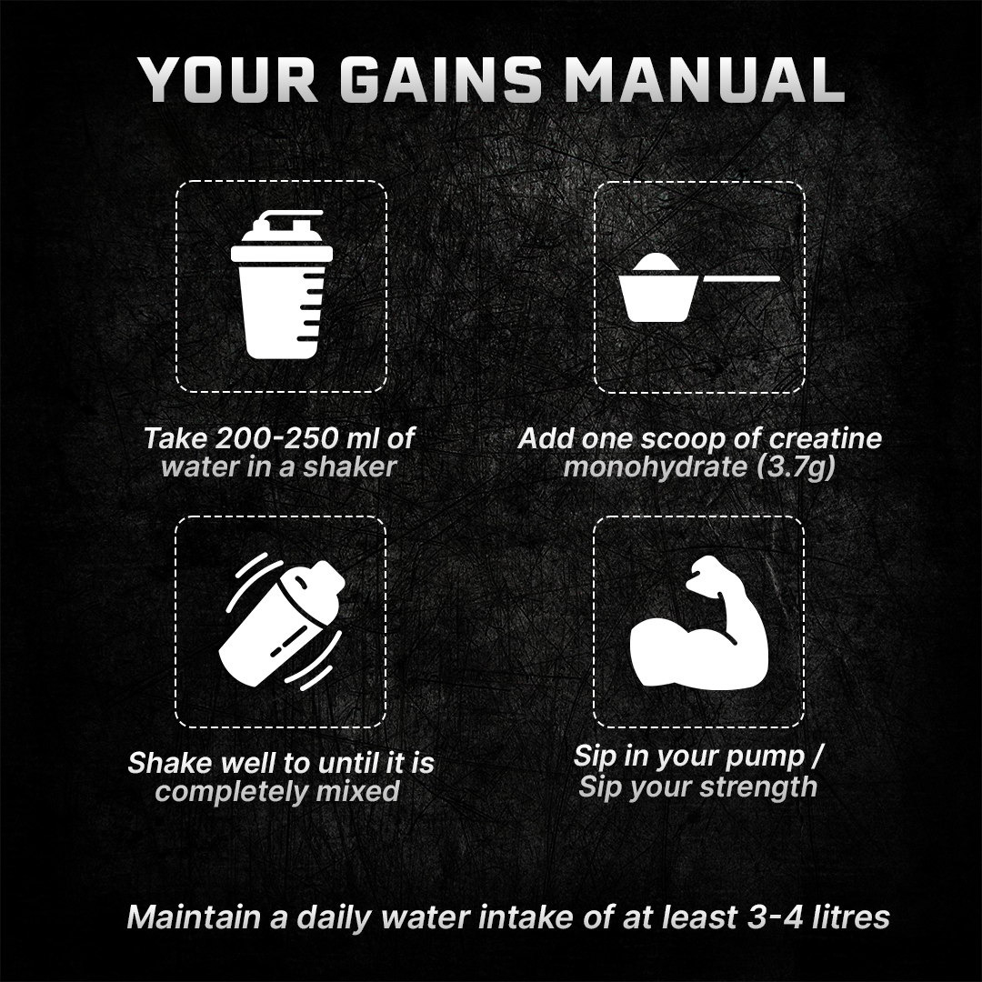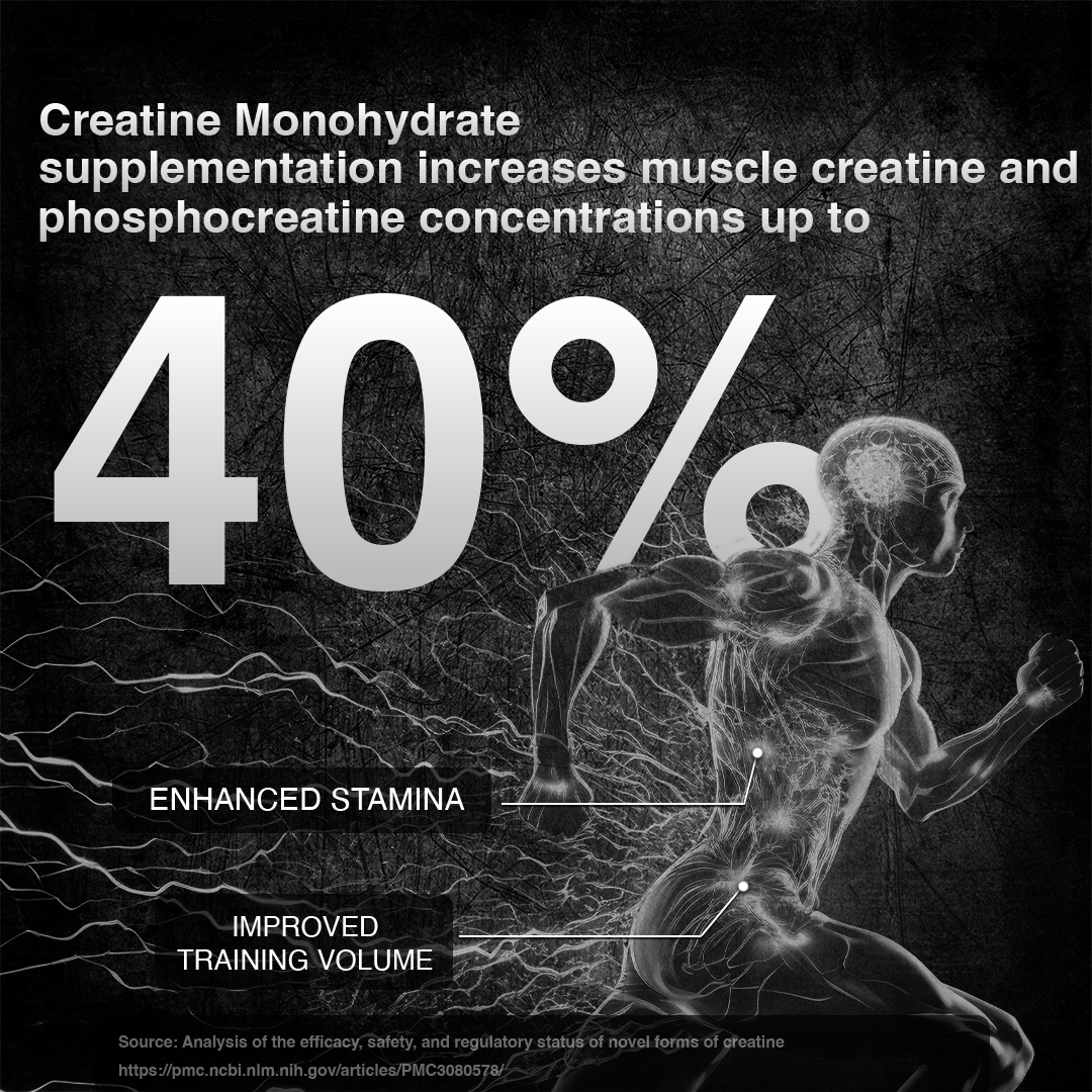 Increases ATP Production: Creatine Monohydrate plays a crucial role in regenerating Adenosine Triphosphate (ATP), improving overall athletic performance.