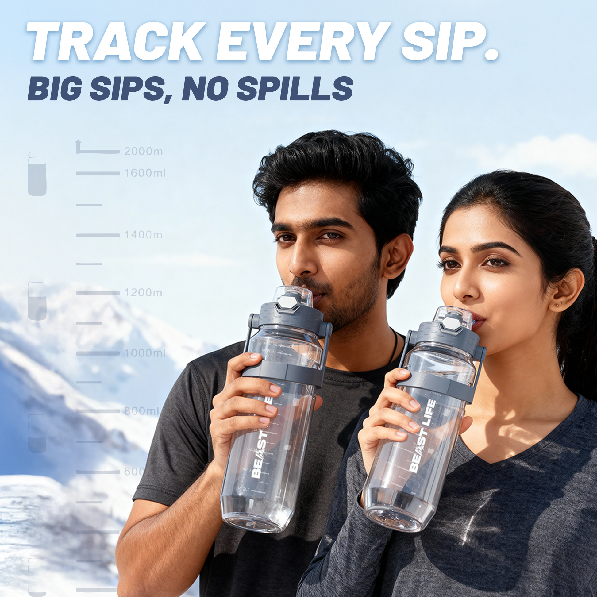 Meet your ultimate hydration partner - The Beast Life 2Litre Gallon Water Bottle.