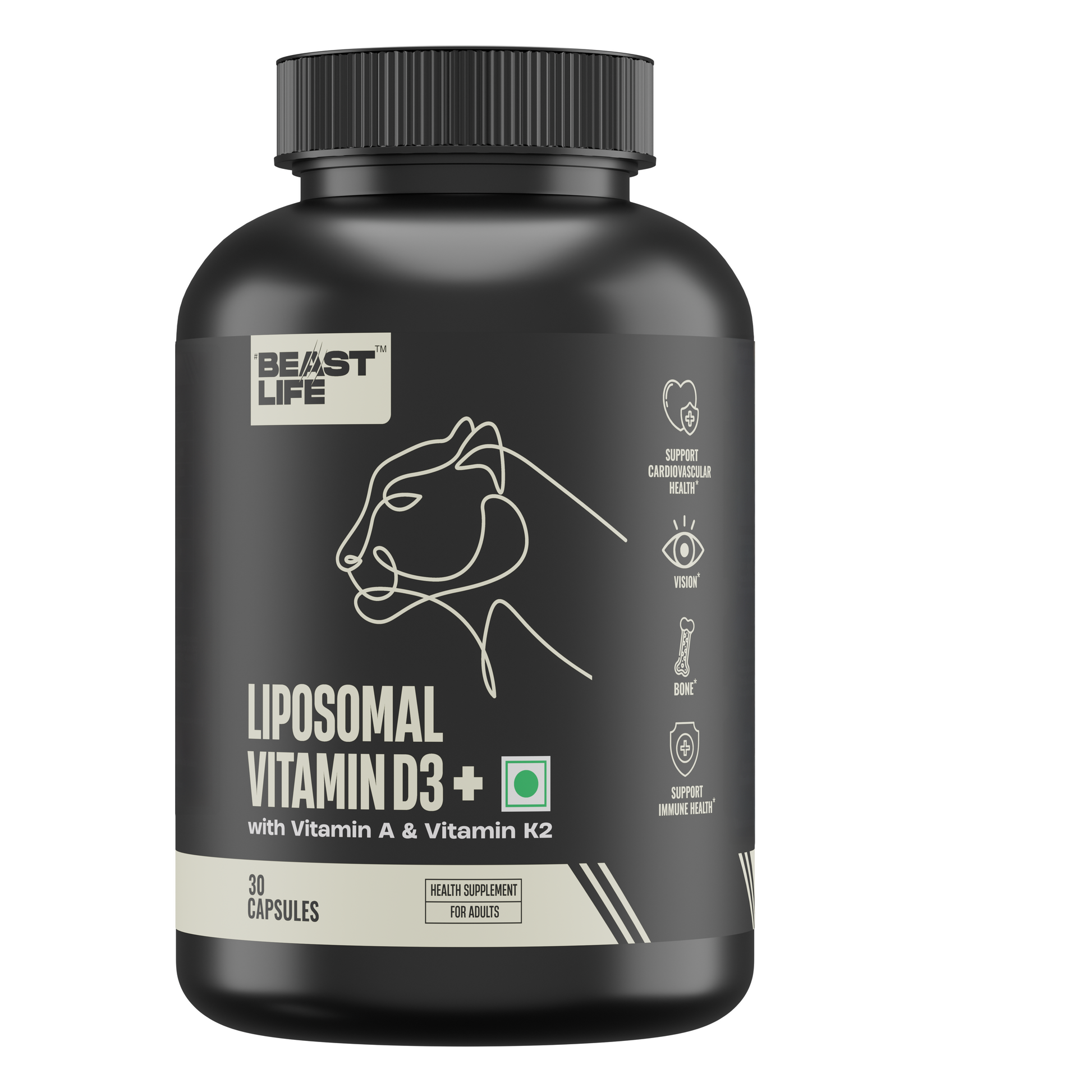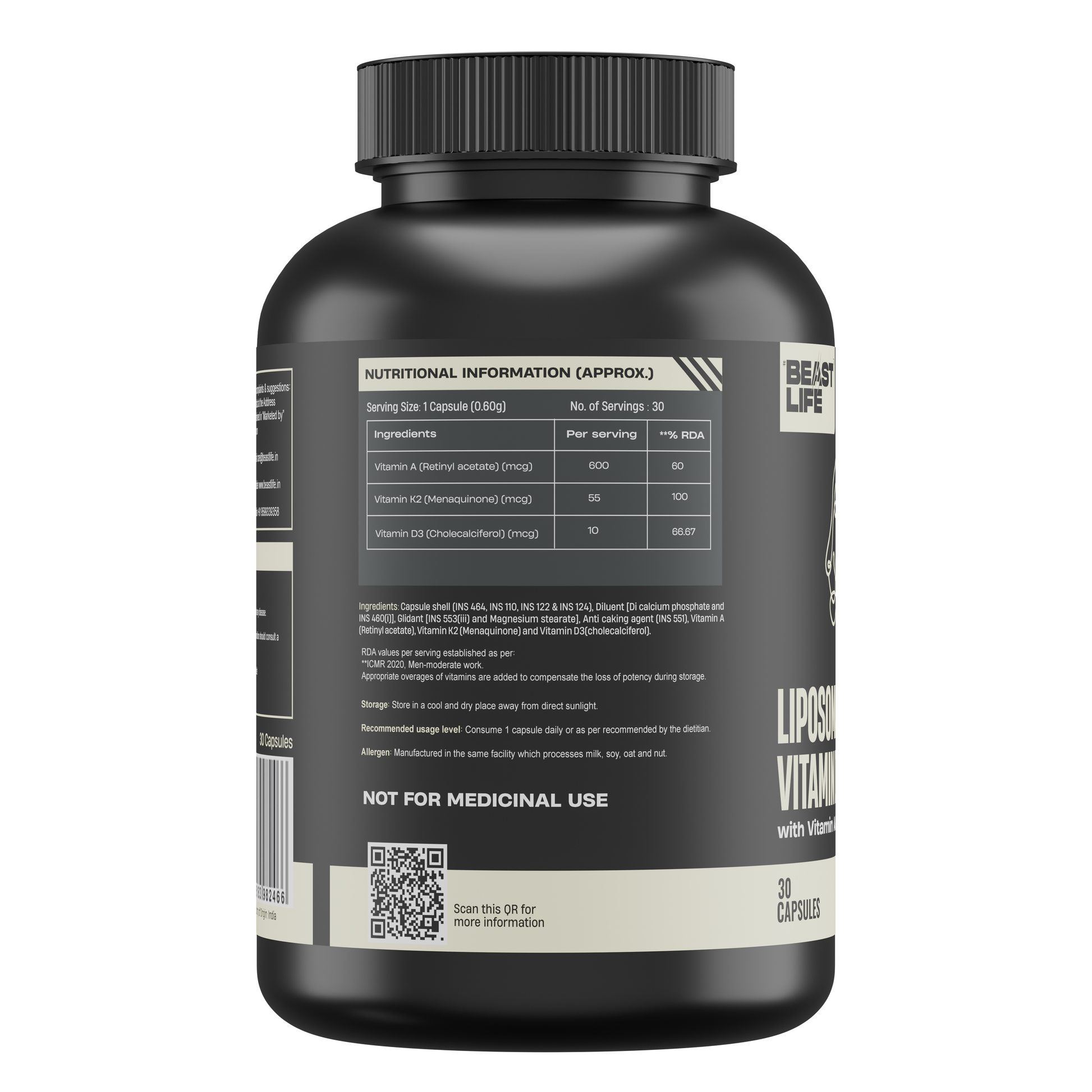 Beast Life Liposomal Vitamin D3+ delivers a scientifically crafted trinity of essential fat-soluble vitamins in one powerful formula. Advanced Liposomal Encapsulation ensures maximum absorption of vitamins for immune and vision support, and bone strength.