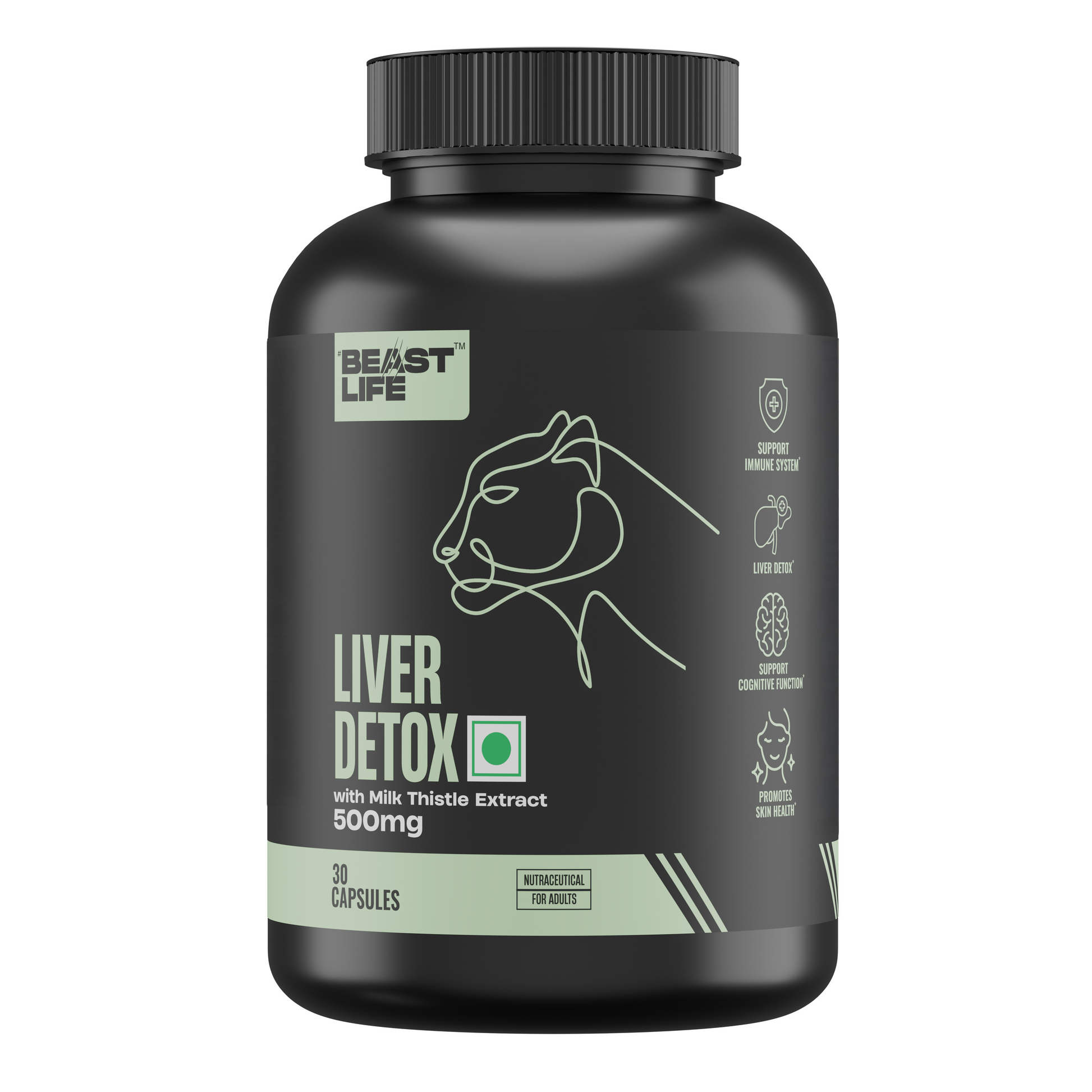 Liver Detox formula features 500mg of Silybum marianum extract, standardized to 80% silymarin, delivering potent liver support, hormonal balance, and skin clarity while combating daily toxins, hormonal fluctuations, or skin breakouts.