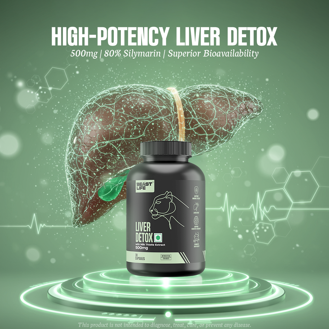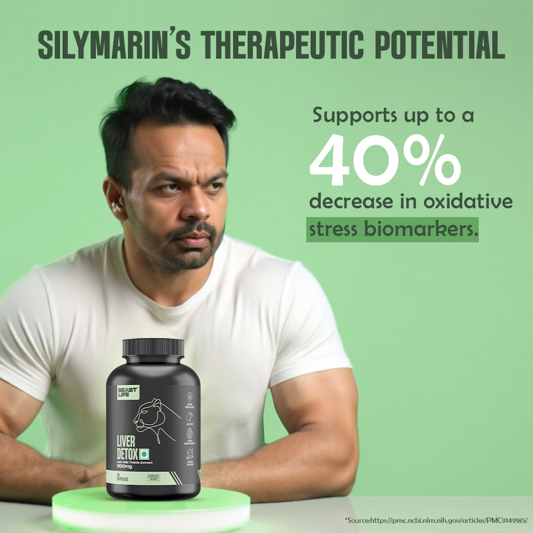 Standardized to 80% Silymarin: Backed by studies for liver detox, antioxidant support, and inflammation reduction.