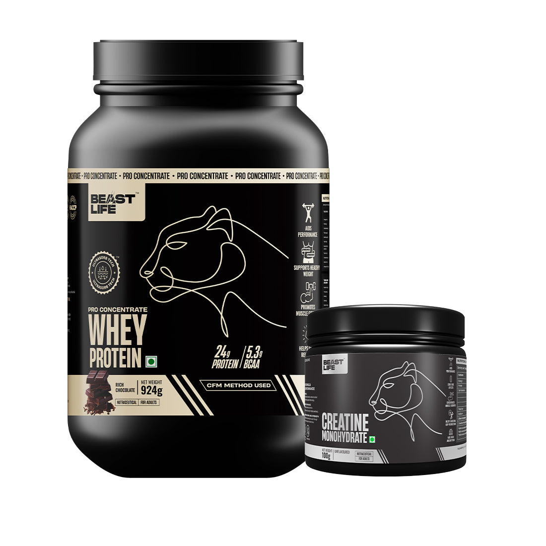 This dynamic duo of Whey Protein (924g) and Creatine (100g) is your power boost to skyrocketing gains, faster recovery, and peak performance. Packed with pure, muscle-building protein and explosive power-boosting creatine, you'll crush your goals, recover swiftly, and stay lean and energized. The delicious flavor and smooth mix make every shake a treat. Get ready to dominate your workouts and transform your routineāfuel your beast mode and see the difference!
