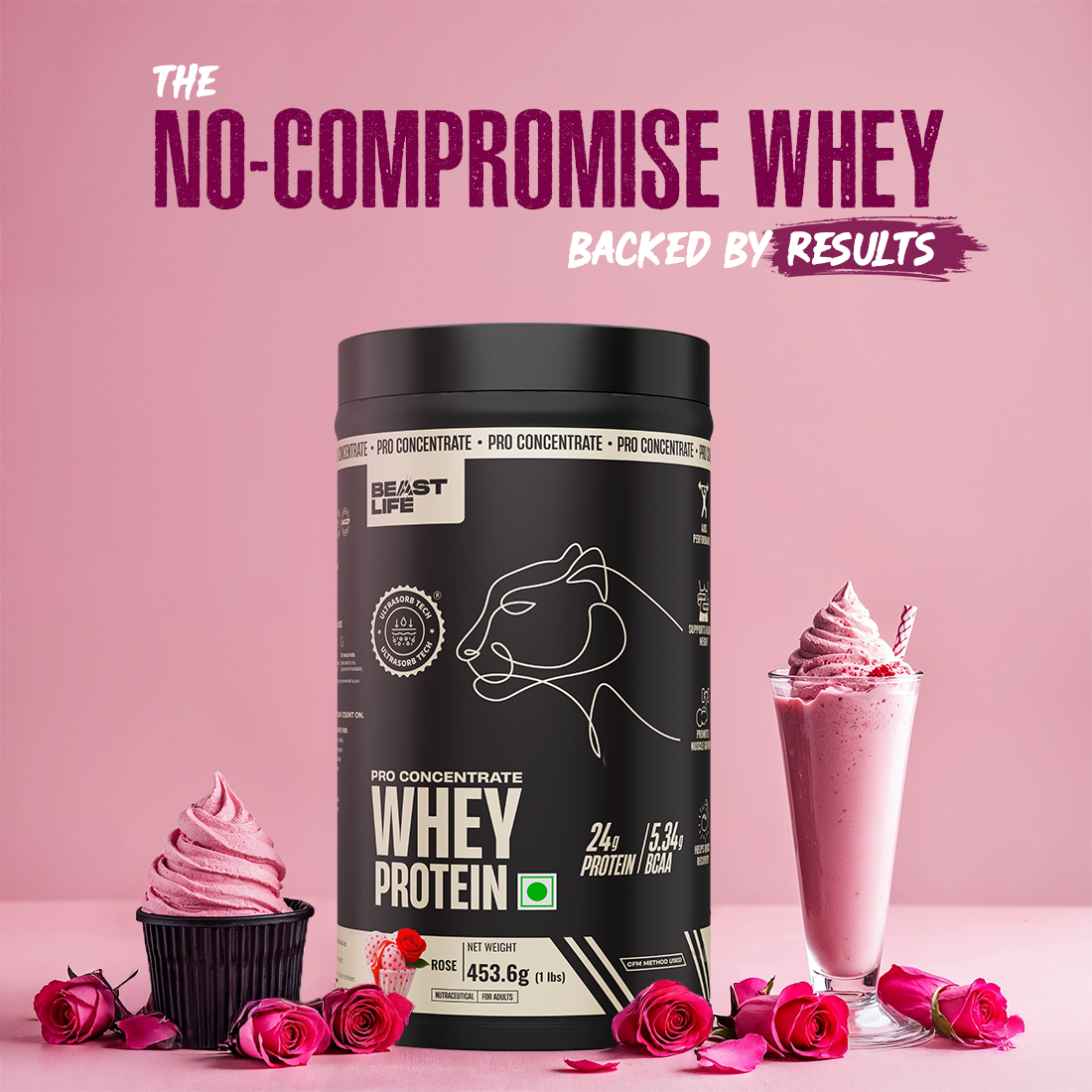 100% Premium Whey Concentrate, crafted using the CFM (Cross-Flow Microfiltration) process. Powered by Ultrasorb Tech™ for max protein absorption without any digestive discomfort.