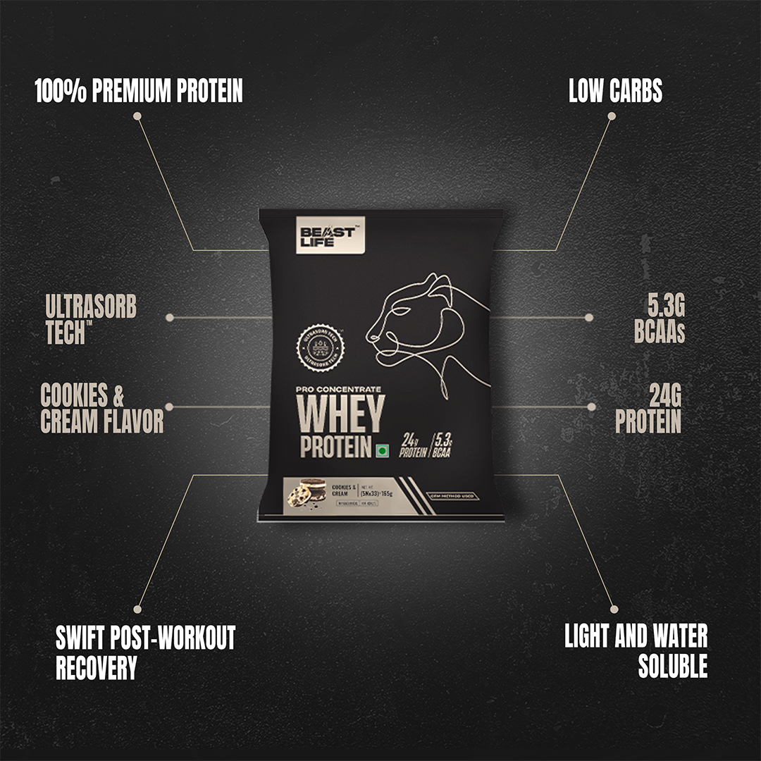 Pro Whey Protein Cookies & Cream Travel (Pack of 5) sachets