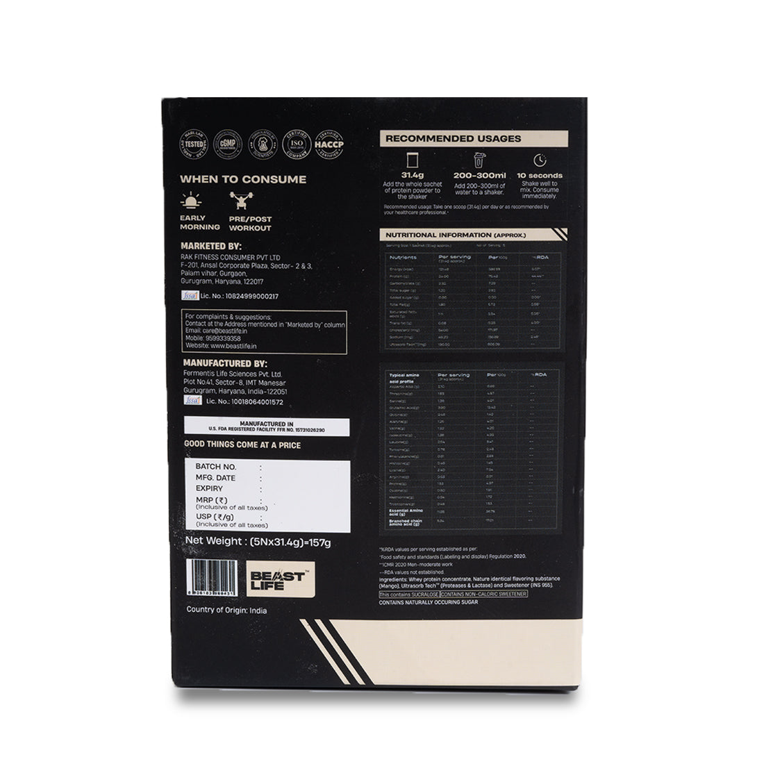 Filler-Free Formulation: Free from thickeners, anti-caking agents, anti-foaming agents, emulsifiers, and preservatives.