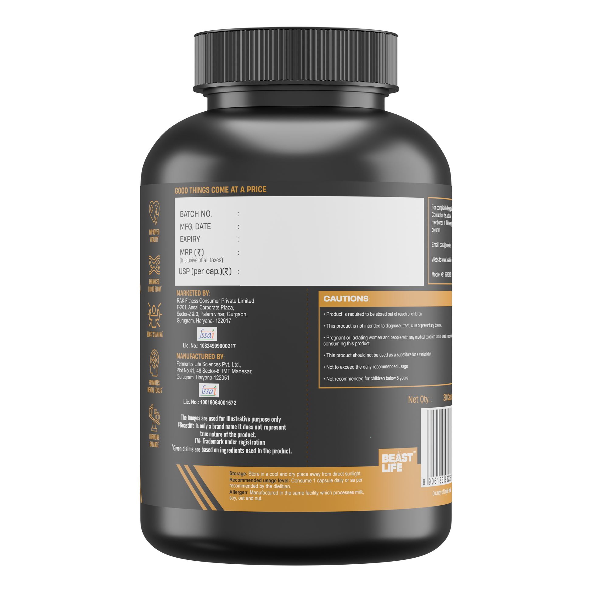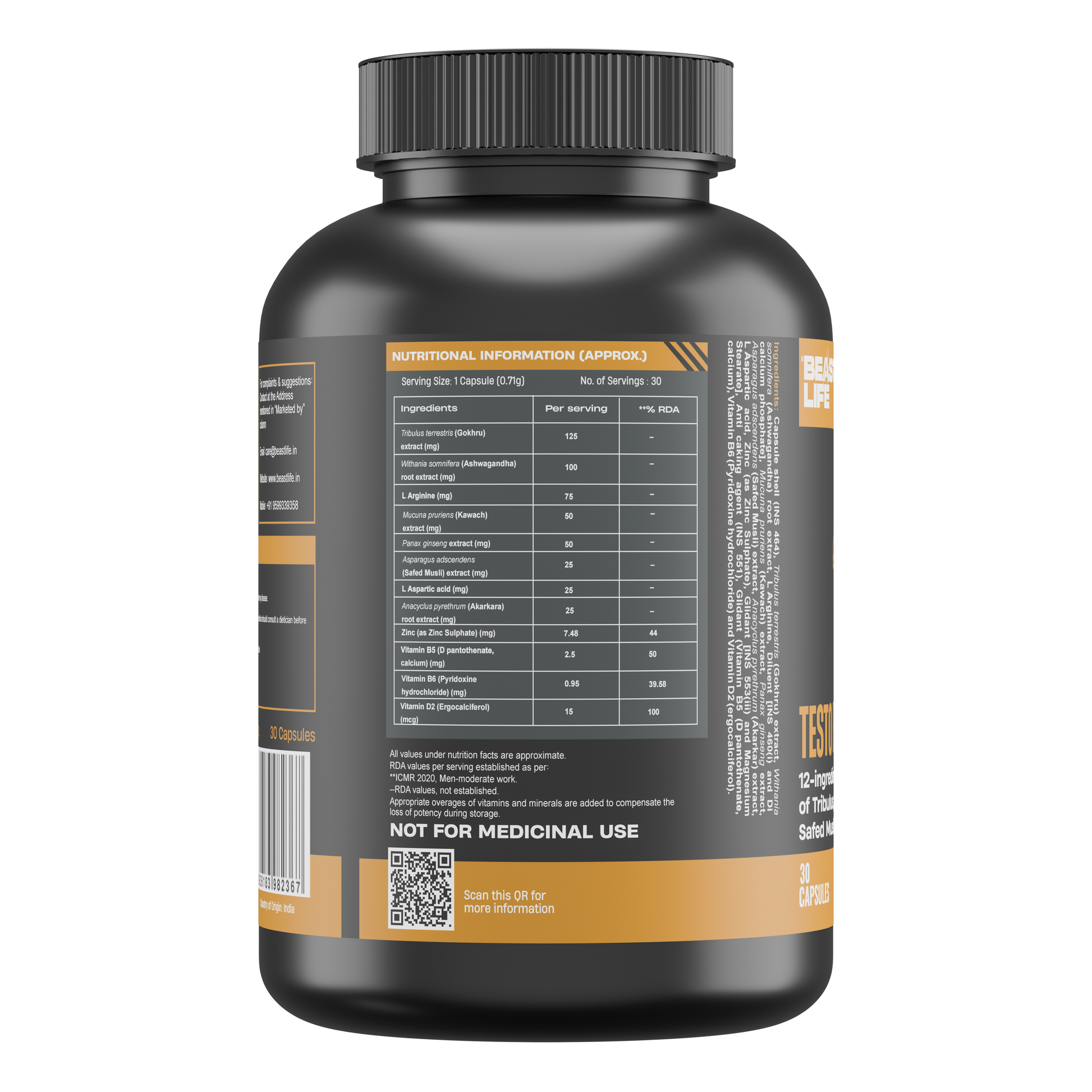 Clinically Researched Key Ingredients: Includes ingredients studied extensively in clinical trials like Ashwagandha, Tribulus, Safed Musli, Mucuna, Anacyclus pyrethrum and Ginseng and much more. Note: These studies were not conducted by Beast Life.